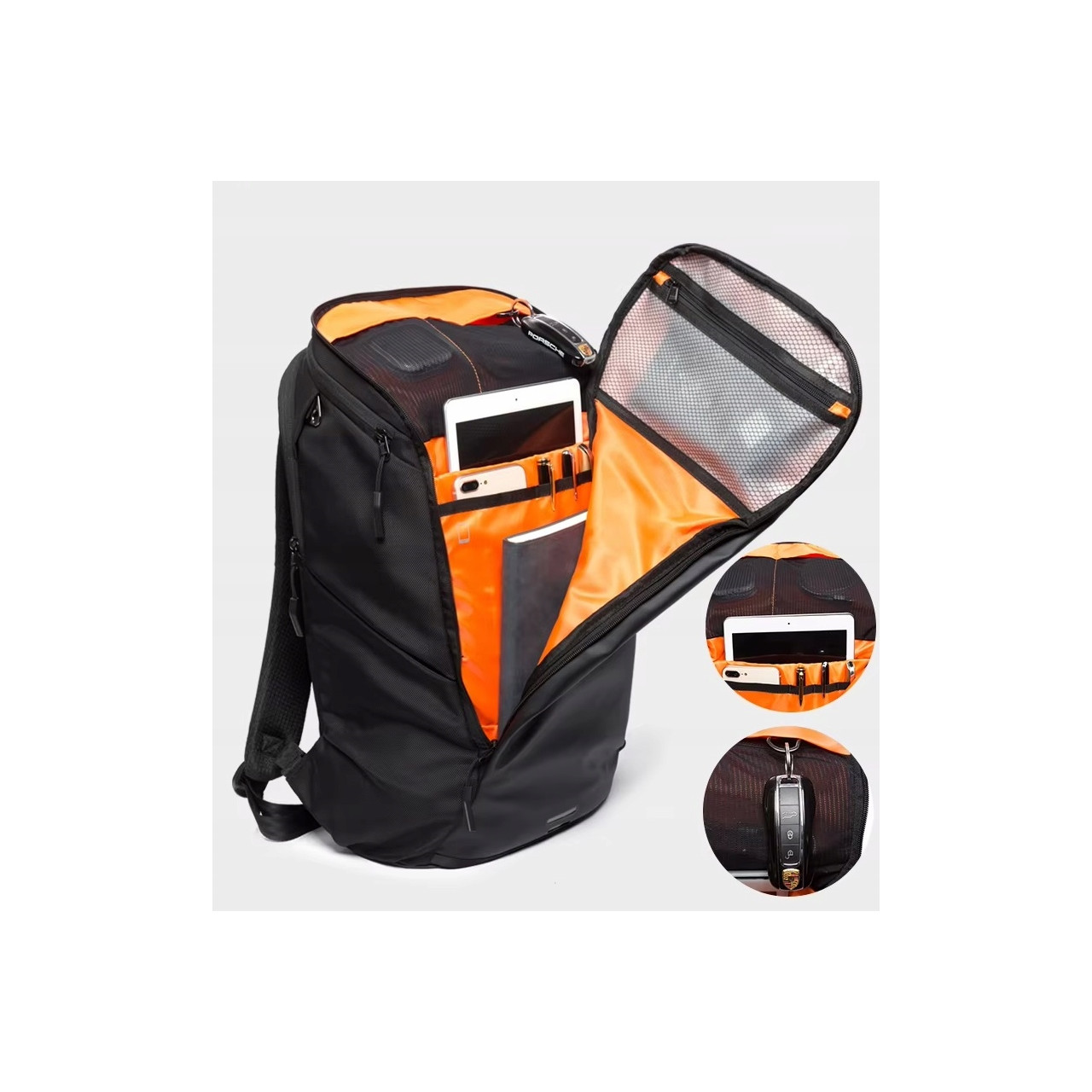 Kieszeń z przegródkami na telefon, portfel, powerbank, klucze i drobne akcesoria.