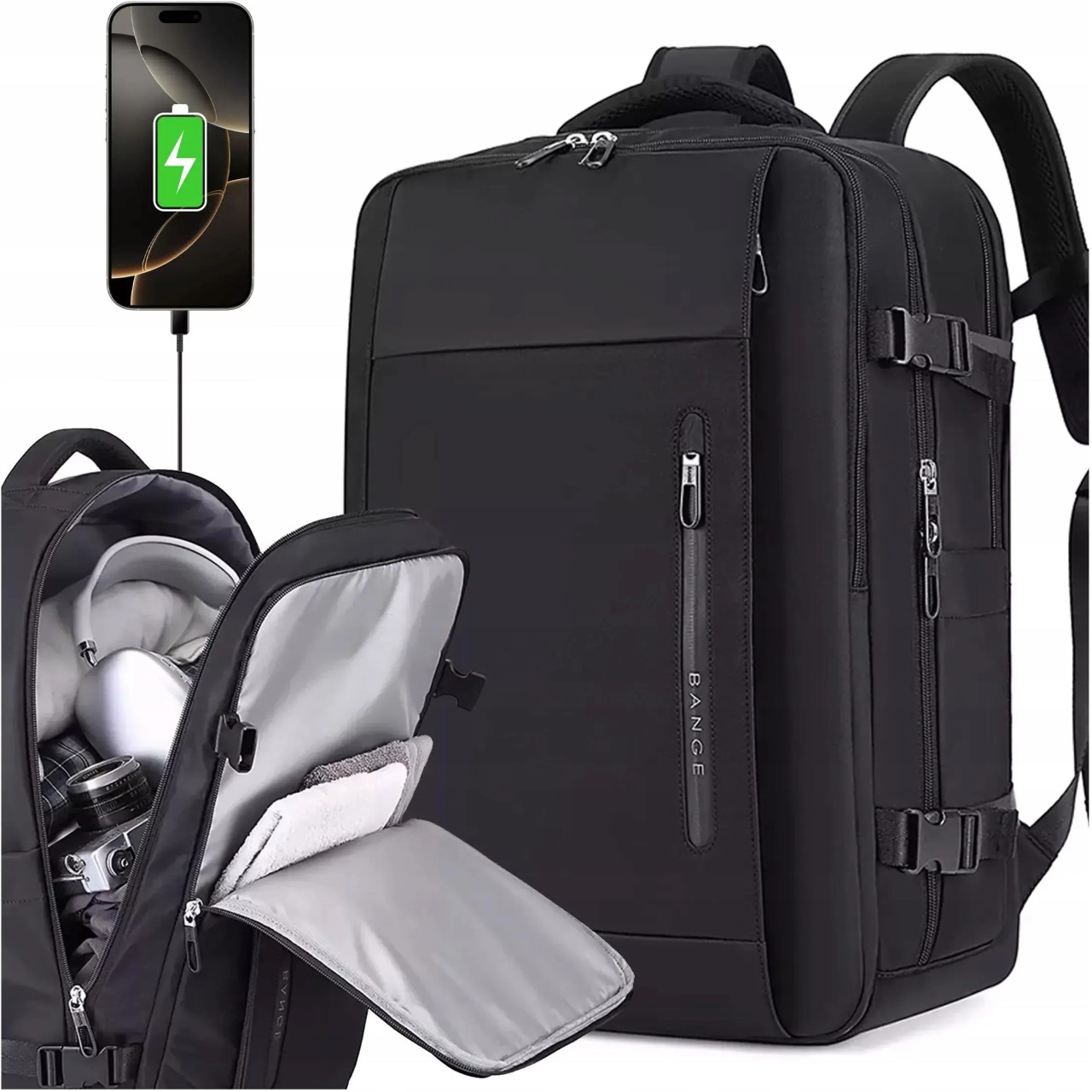 Plecak na laptopa 17,3” BANGE z USB – wodoodporny plecak podróżny i biznesowy
