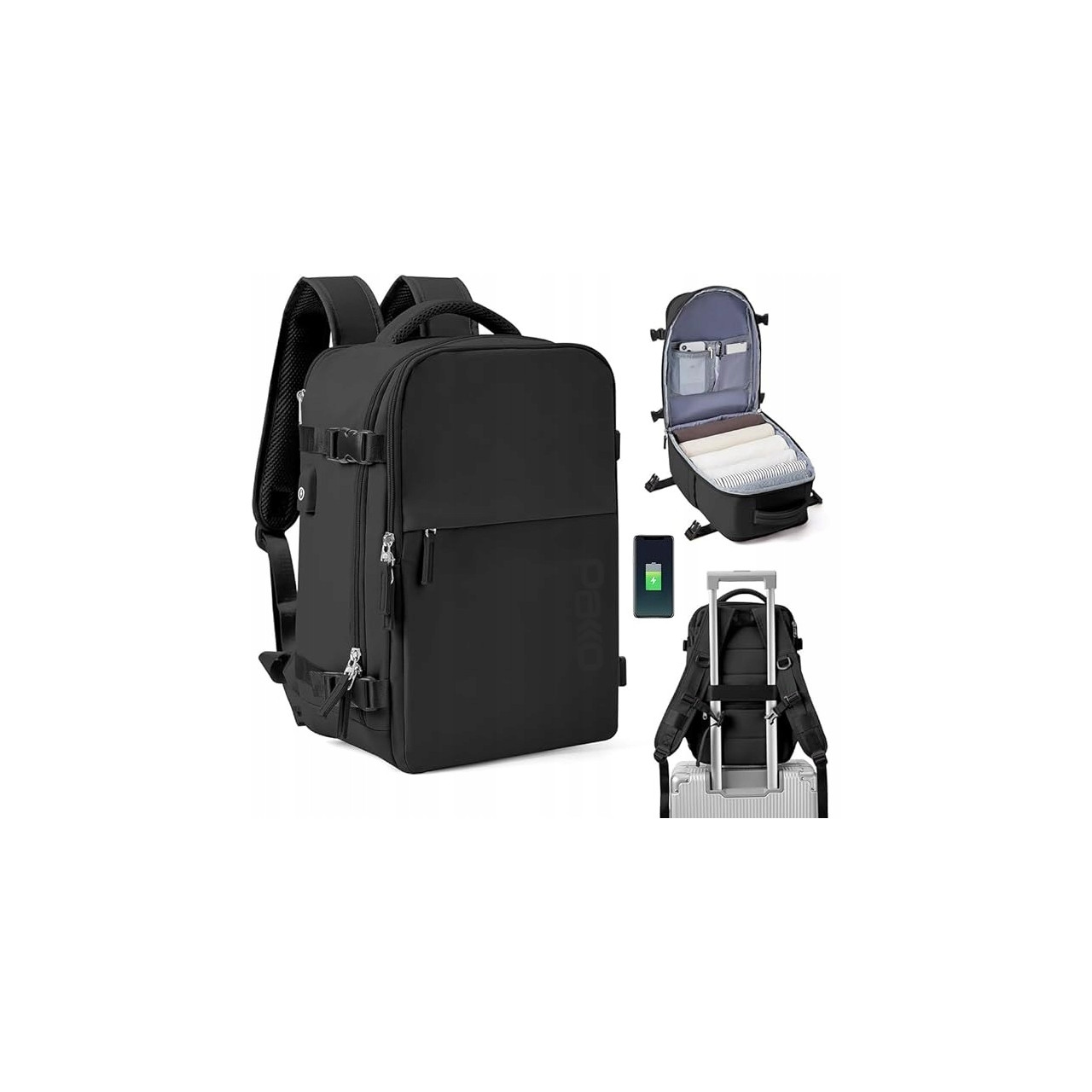 Wielofunkcyjny plecak Pakko na laptopa 15,6” – bagaż podręczny 40 × 25 × 20 cm z USB