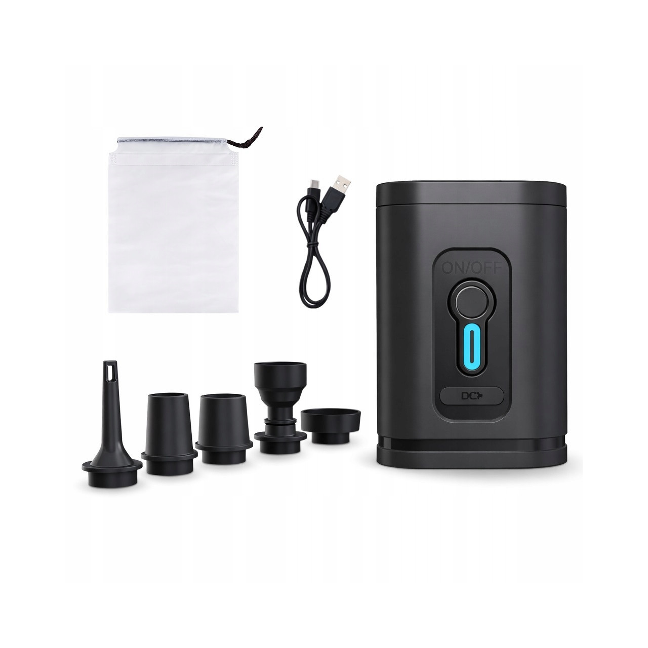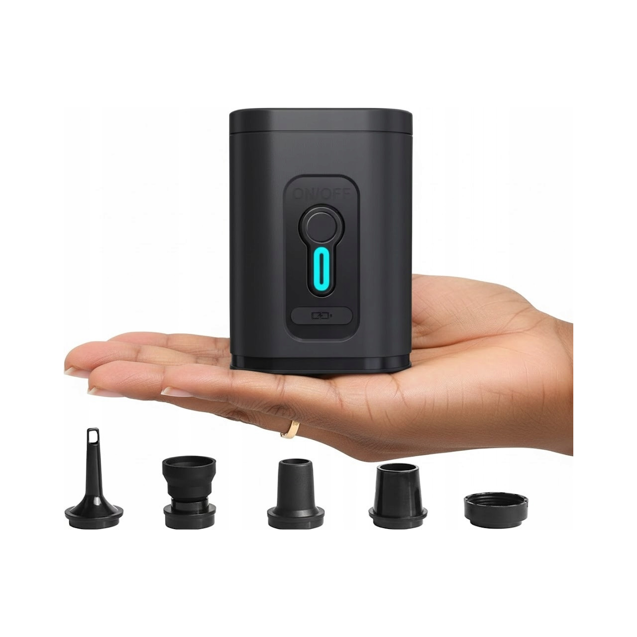 Kompresor działa w trybie 2w1: pompowanie i odsysanie powietrza. Ma moc 30 W, przepływ powietrza 200 l/min, akumulator 700 mAh i ładowanie USB Typ C. Dzięki małym wymiarom mieści się w dłoni i jest wygodny do zabrania w podróż. W zestawie z workiem pozwala szybko usunąć powietrze i zmniejszyć objętość pakowanych rzeczy.