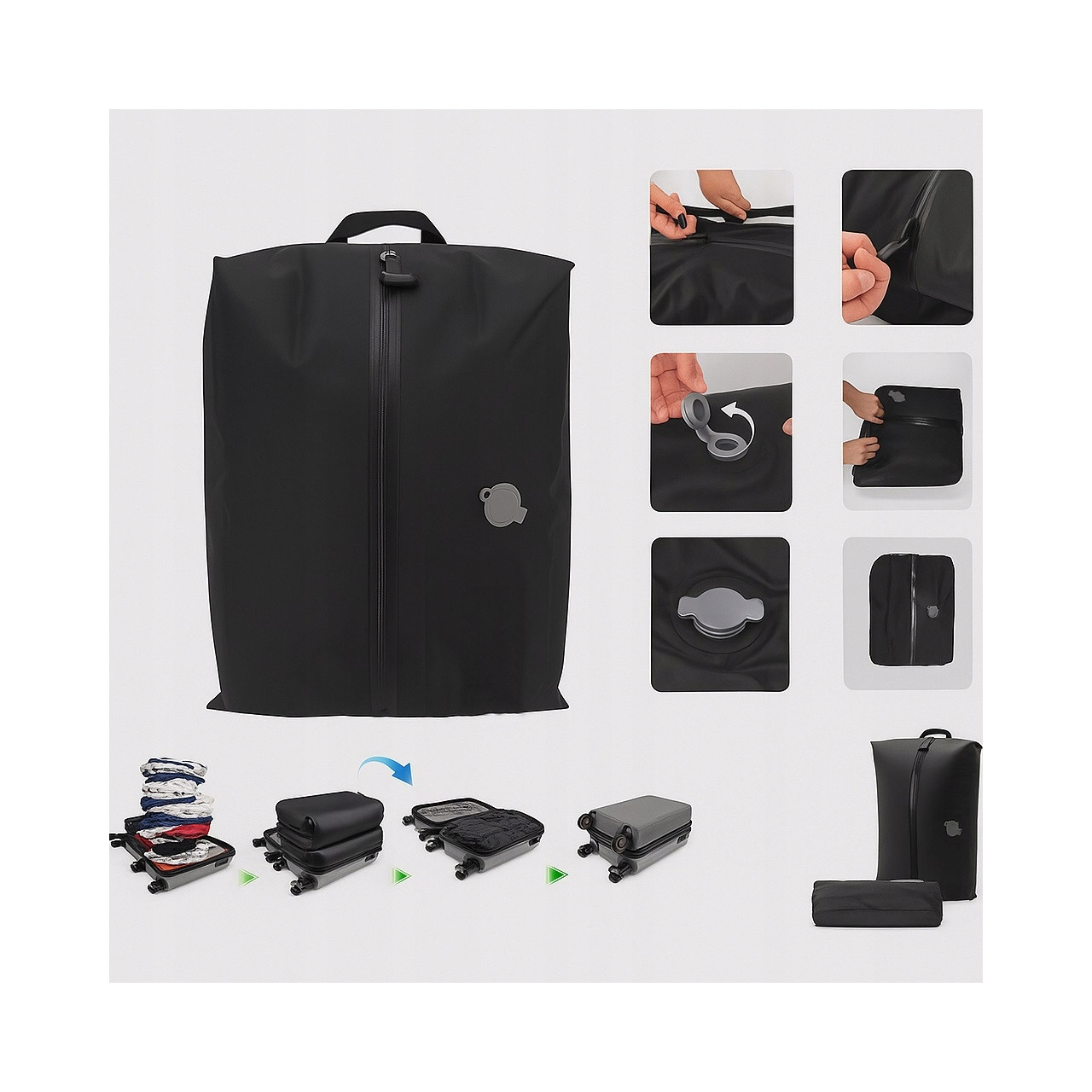 Worek został wykonany z trwałego materiału TPU + nylon. Jest wodoodporny, odporny na zabrudzenia i wyposażony w szczelny zamek IP67 oraz jednostronny zawór o średnicy 2,5 cm. Jego wymiary to 38 × 30 × 20 cm, dzięki czemu świetnie nadaje się do pakowania ubrań, ręczników, pościeli, butów i akcesoriów podróżnych.