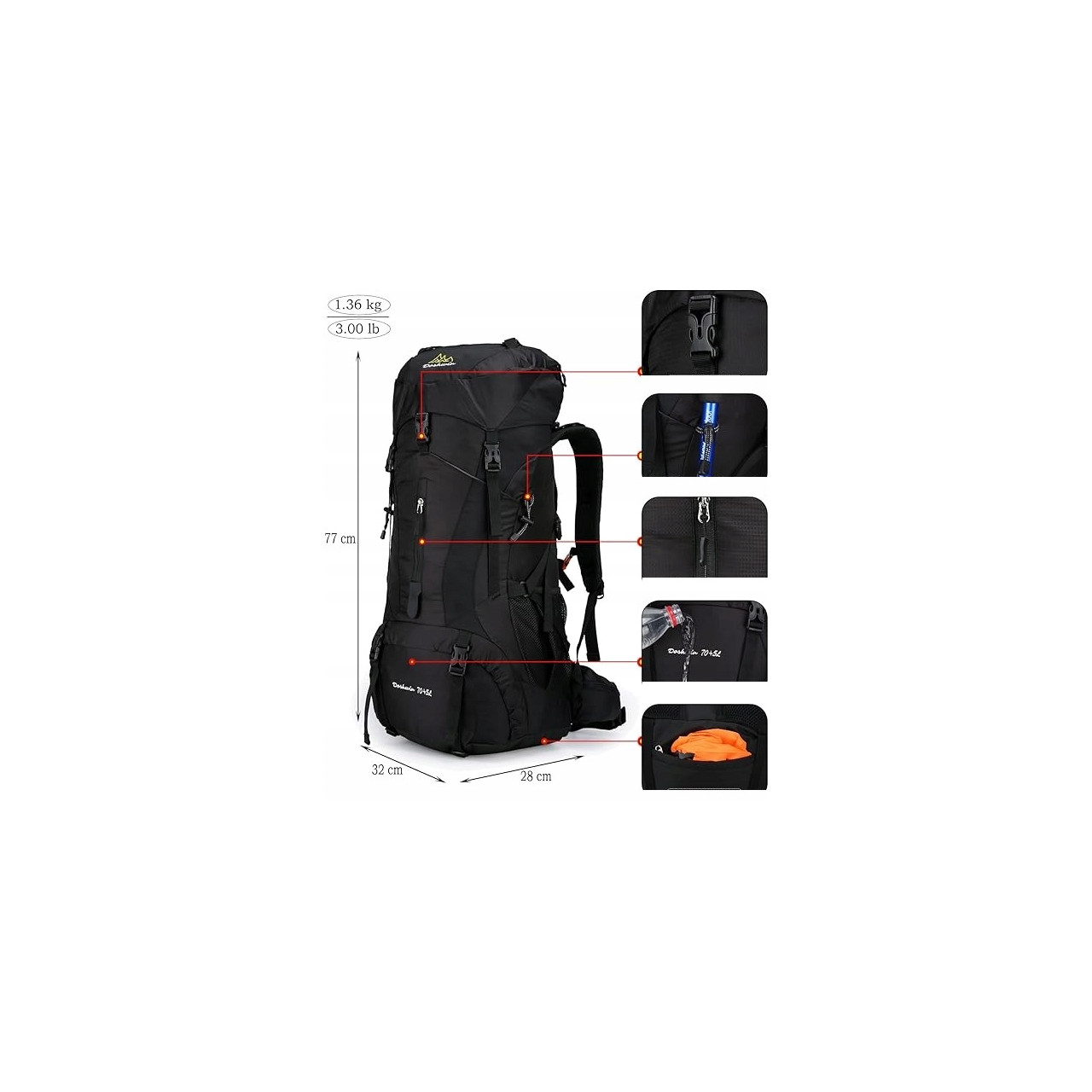 Plecak 70L – Kempingowy, Trekkingowy, Turystyczny, Podróżny z Osłoną Przeciwdeszczową – Czarny